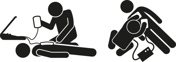 Så snart der er en hjertestarter, følges instruktionerne på hjertestarteren.