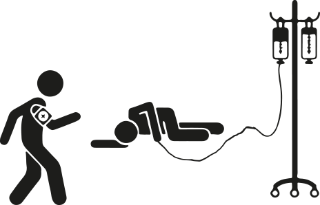 Ved pulserende blødning eller hel-eller delvis amputation, ring 1-1-2.