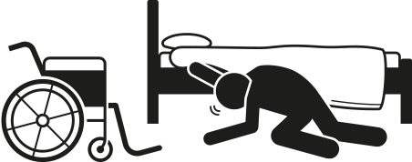 Hvis du har et fysisk handicap, og det ikke er muligt for dig at forlade rummet, skal du så vidt muligt prøve at komme ned på gulvet og ligge. Du kan evt. prøve at kaste dig ud af sengen eller stolen for at komme ned til gulvet.