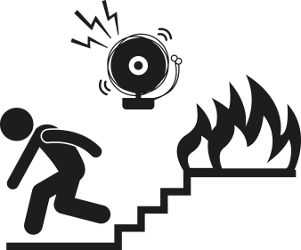 Det første du skal gøre, hvis brandalarmen går, er at forlade bygningen.