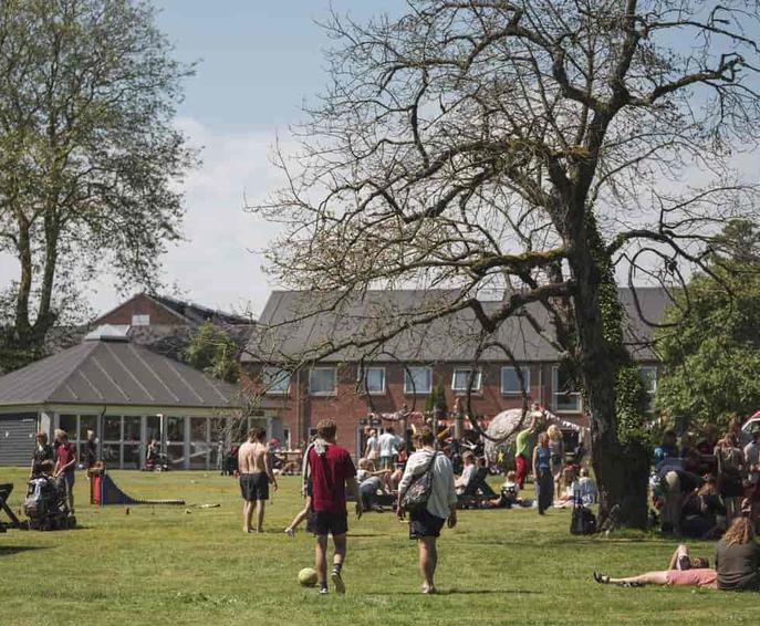 Når du er kommet ud af bygningen, går du mod et af de to samlingspunkter, der er på Egmont Højskolen.