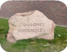 I stenen er der indhugget med store bogstaver: ”EGMONT HØJSKOLEN”.