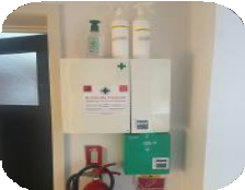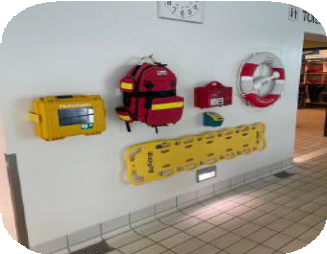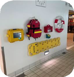 Vi har en del nødhjælpskasser på højskolen, og nedenfor kan du se en liste over, hvor de befinder sig.