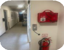 På rød gang er alle værelserne brandsikret med brandmure mellem værelserne.